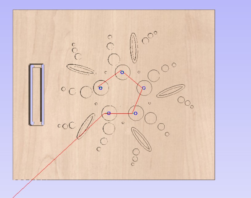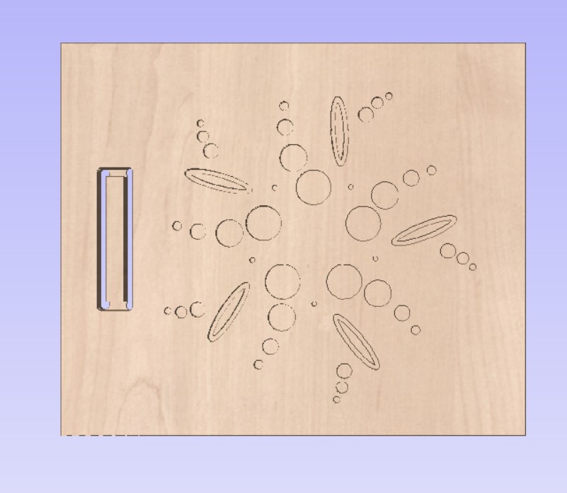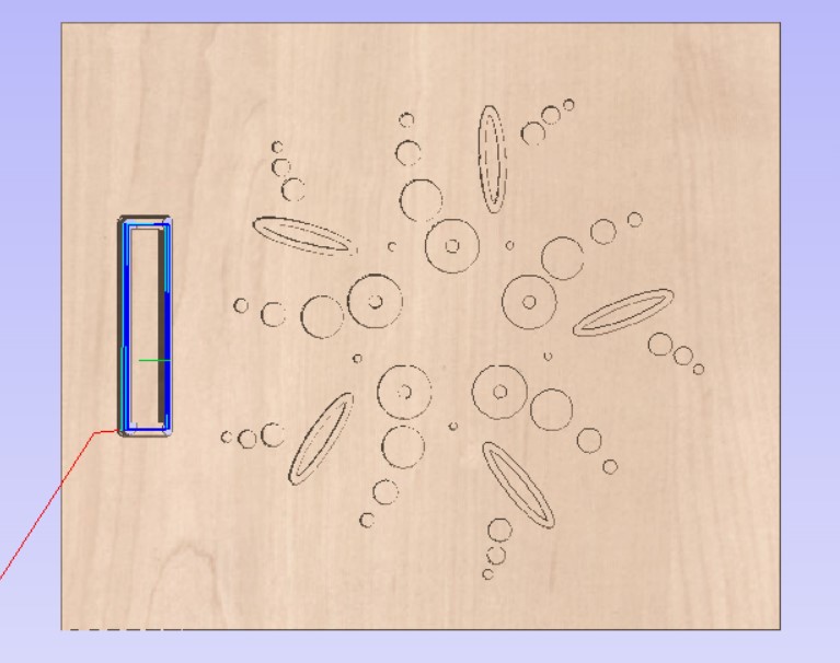 After previewing my entire design, I realized that there were small stubs in the middle of each large circle, as the 3/8" bit size was smaller than the diameter of the circle.