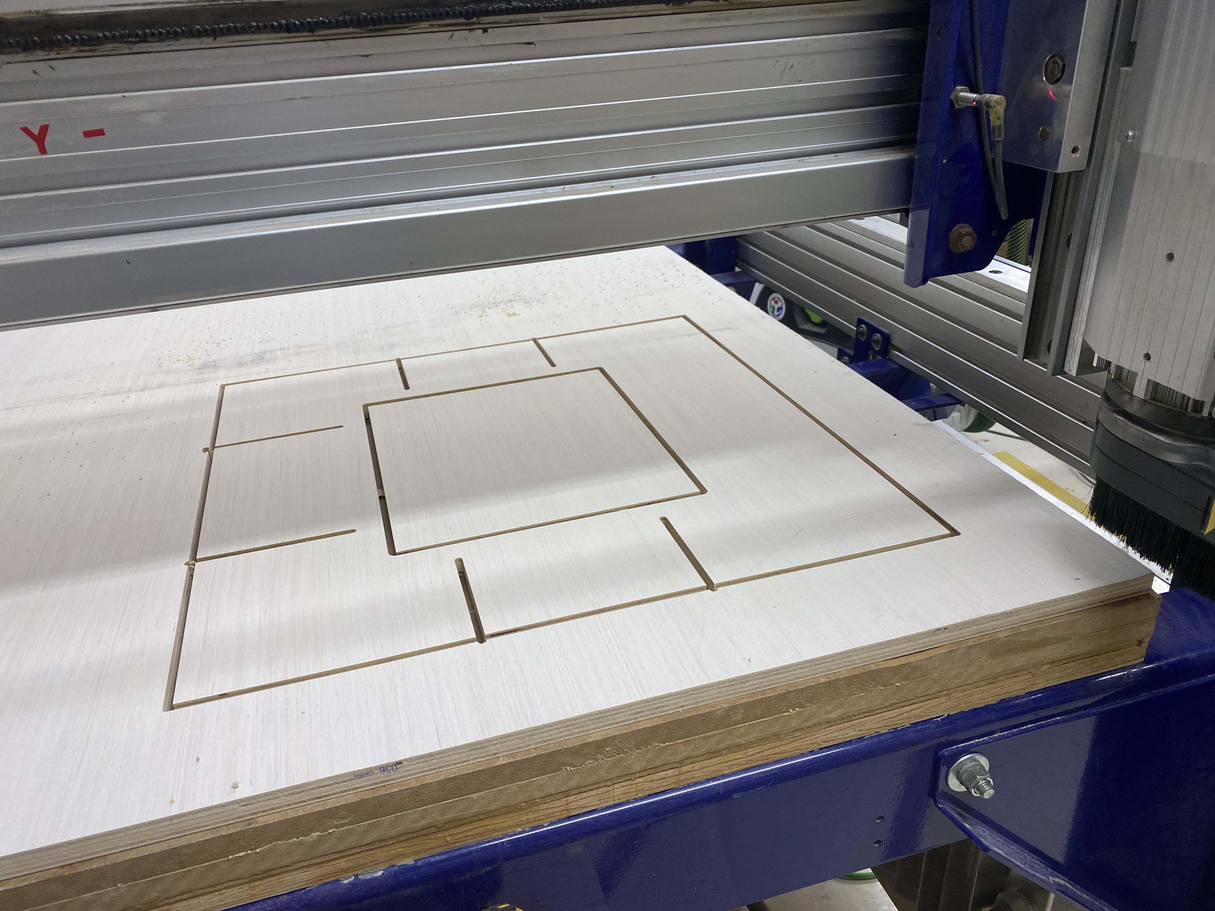 Because I used multiple bits of different sizes, the Shopbot had to change the active bit during the cut. Here is a timelapse of the machine changing bits during the job.