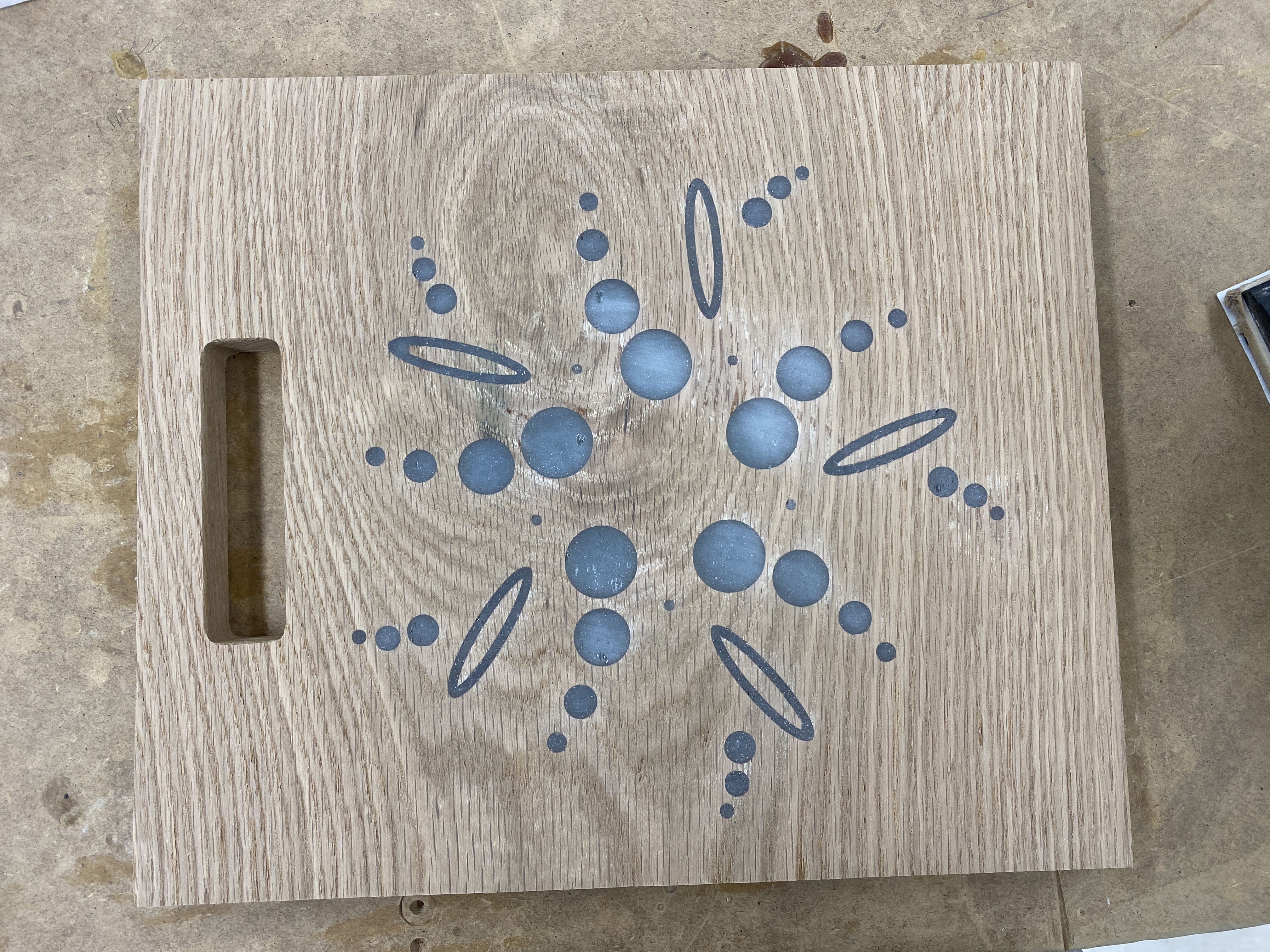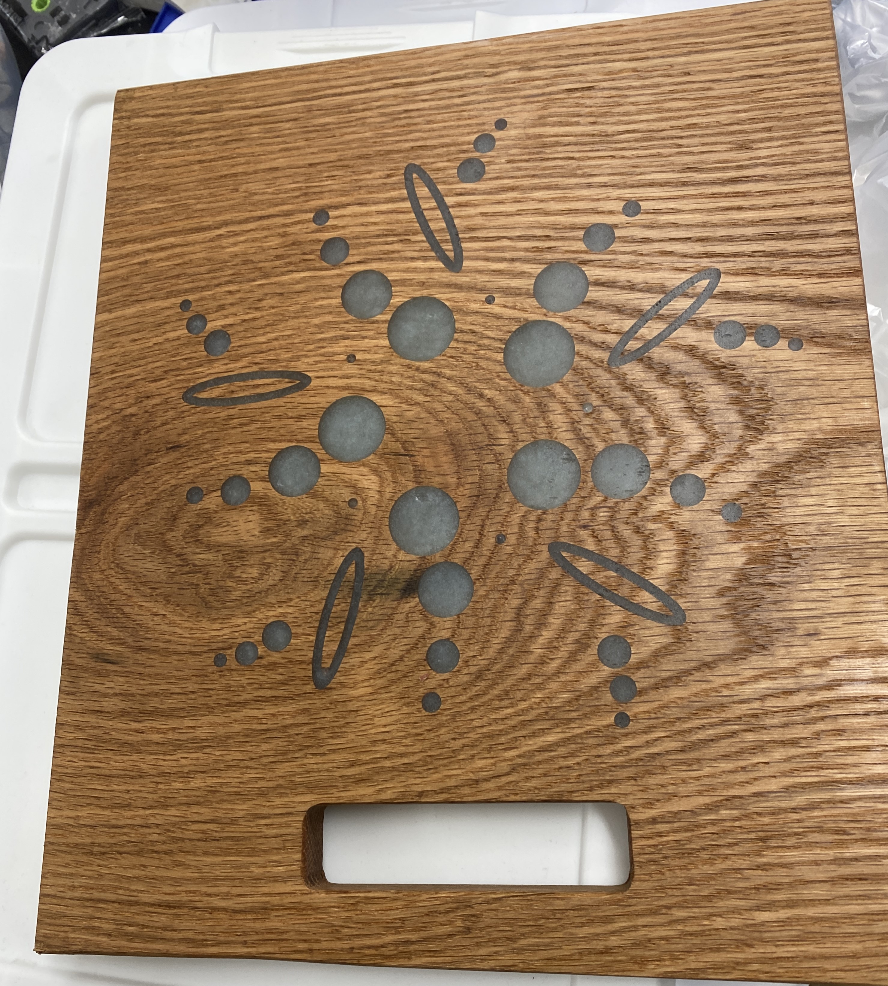 For this project, I was assigned to create a custom cutting board through making indentations and holes with the Shopbot CNC machine and filling them in with resin.