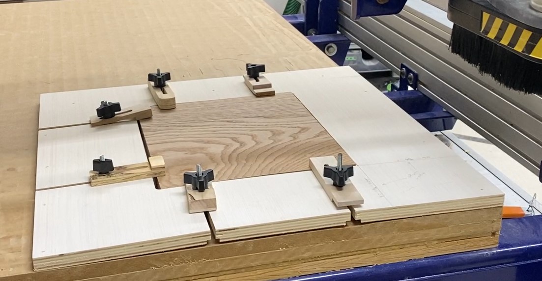 After running an air cut and verifying that everything looked good, I secured my cutting board wood to the previously made jig.