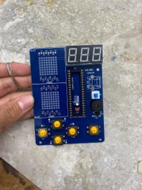 Overall, this unit was pretty straightforward and relatively simple. The only major issue I encountered along the way was misreading the polarity of the LED matrices and soldering them on backwards. However, this was a great opportunity to learn how to use the solder-sucker gun, which proved to be incredibly effective in allowing me to remove and resolder the matrices on. I was so impressed by the solder-sucking gun that I would end up using it on other projects such as the production of a SAMD11C PCB where I accidentially soldered a component on backwards.